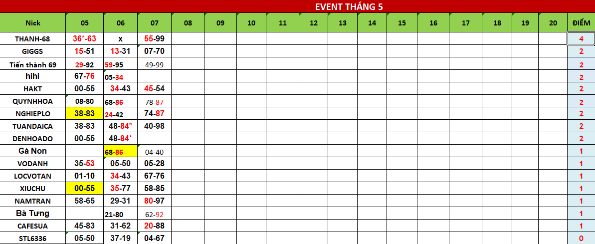 EVENT SONG THỦ LÔ THÁNG 5(05-20/05/2021)